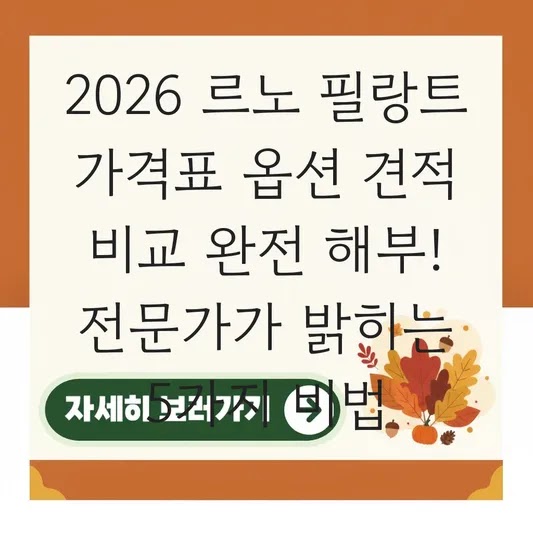이 글을 통해 2026년형 르노 필랑트의 정확한 가격표, 필수 옵션 조합, 그리고 최적의 견적을 위한 실전 전략까지 얻게 될 것입니다.